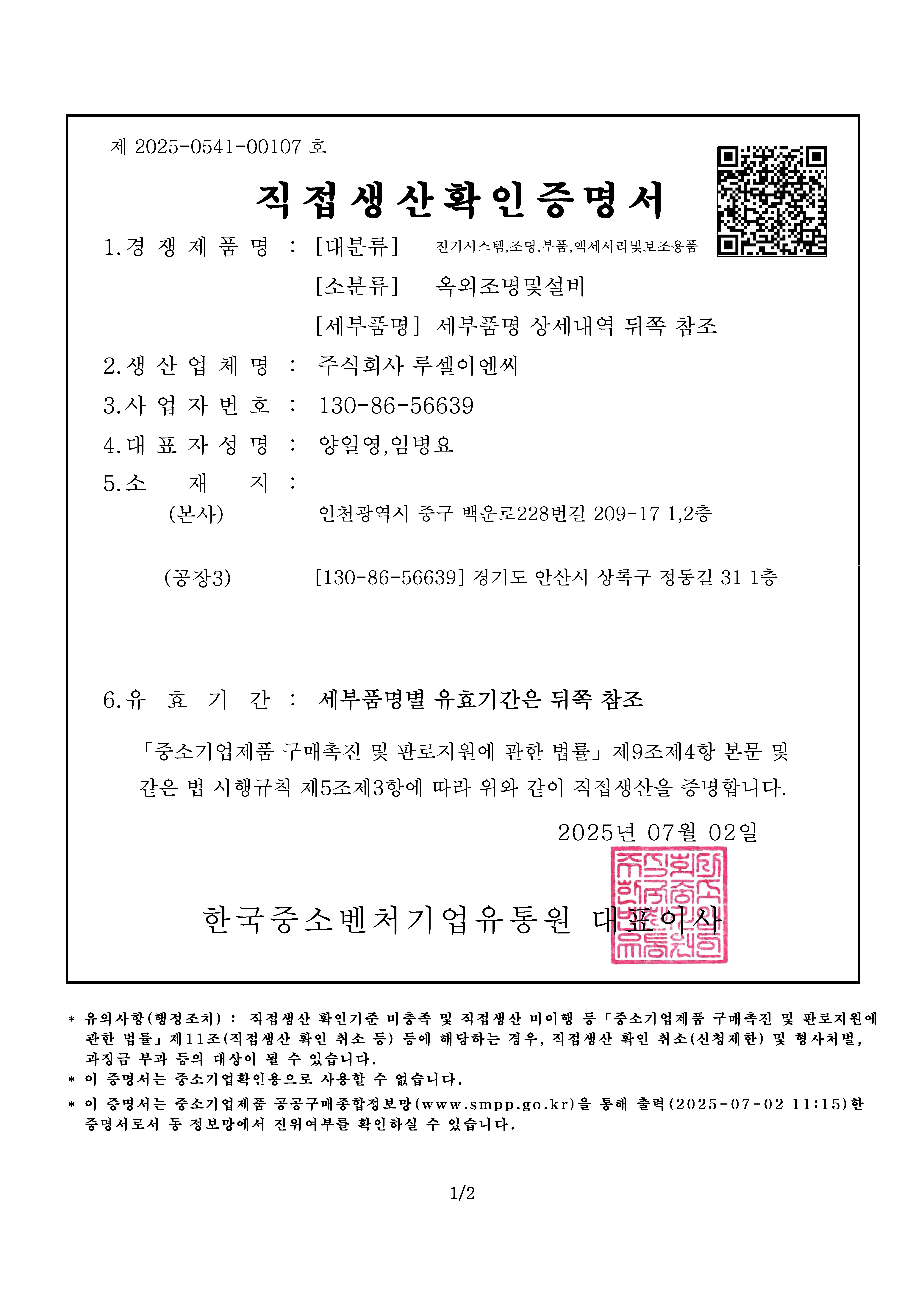 03. 직접생산증명 재 갱신 (LED 경관조명, LED 투광등, 조명용제어장치)