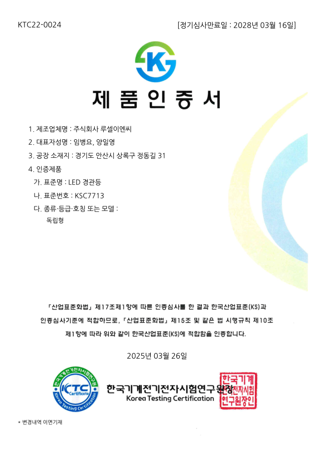 04. KS인증 획득 (KS C 7713, LED경관조명)